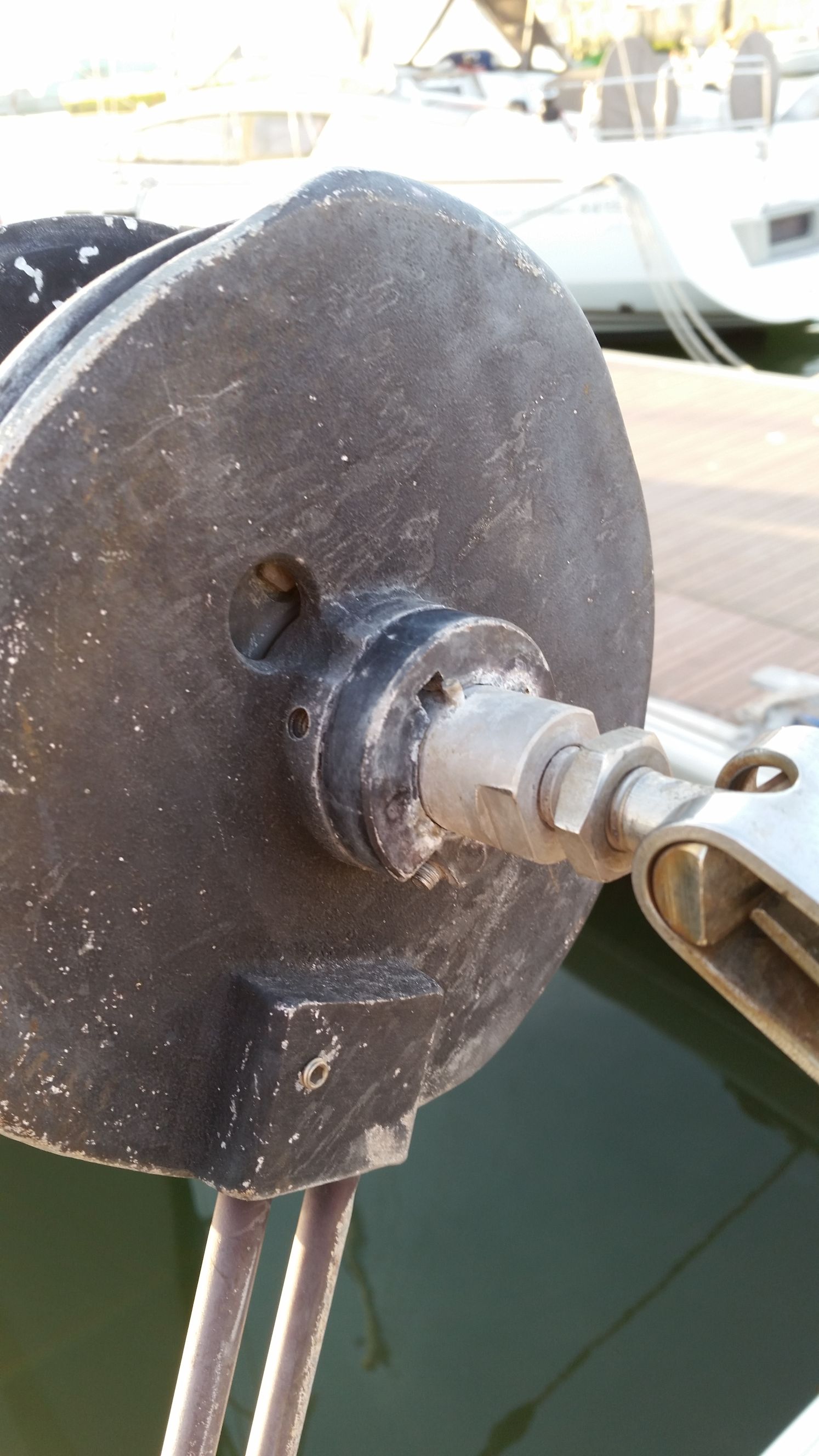 Bonjour,s'agit il de la vis CHC située à 9heures sur la photo?le problème d'impossibilité de démontage de la vis (inox 316L) hors de l'aluminium provient de l'effet de pile (2 métaux différents plongés dans un electrolyte- eau de mer)ne peut on pas percer la vis et passer à la taille supérieure (de M6 passer à M8???)dans ce cas au vu du diamètre du tambour il faudrait trouver un forêt de série longue pour échapper au tambour et refaire le taraudage qui va bien